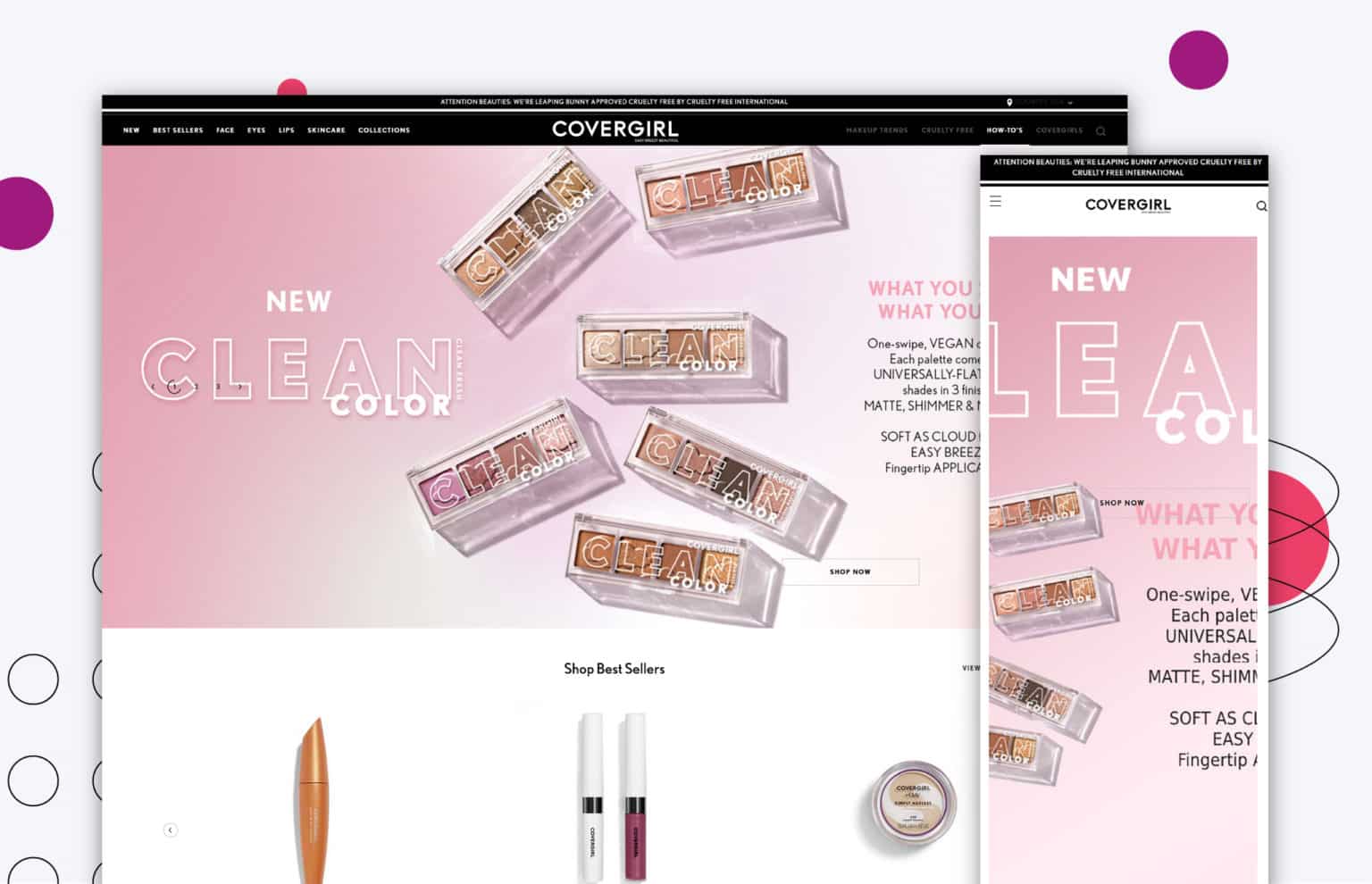 Il y a beaucoup de choses à aimer sur le site Web de CoverGirl, mais l’en-tête du héros est l’une des plus remarquables. Non seulement il présente les produits de manière attrayante, mais il comprend également une copie à la fois informative et créative.